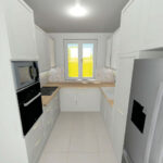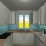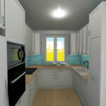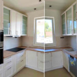 Tinnyén, új építésű ikerházban egy testvérpár konyháin dolgoztam, ahol végül azonos bútorszínt választottak.