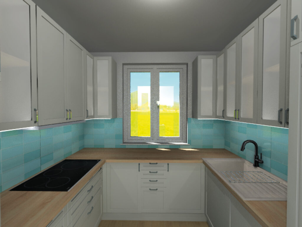 Tinnyén, új építésű ikerházban egy testvérpár konyháin dolgoztam, ahol végül azonos bútorszínt választottak.