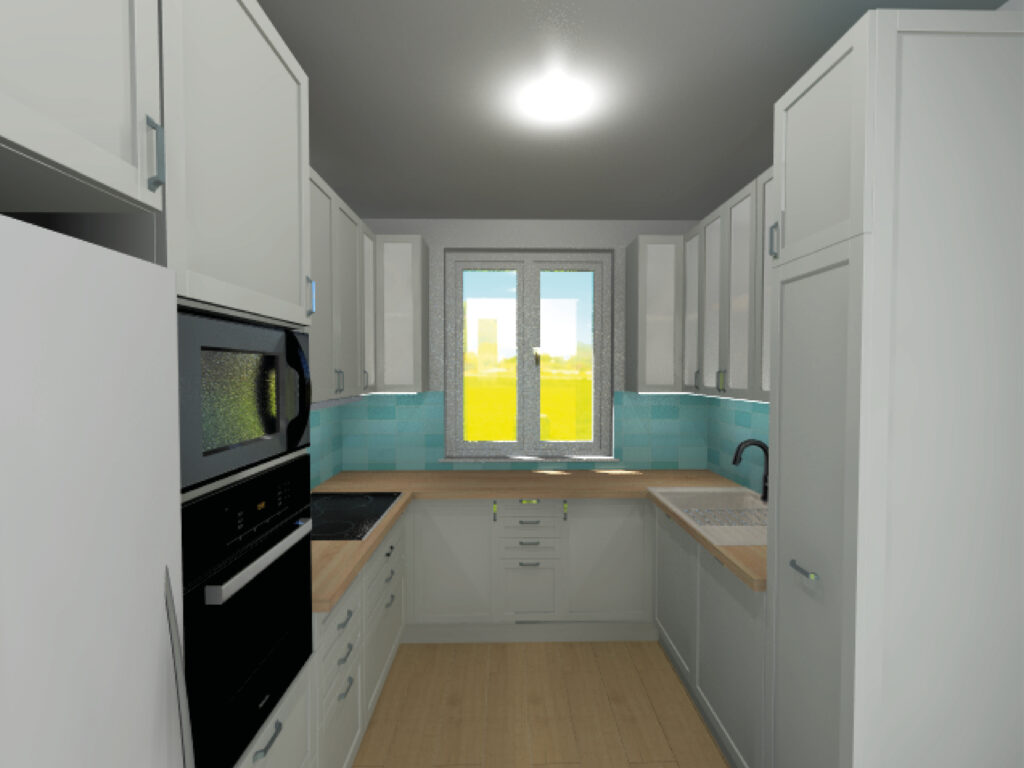 A tervezés során fontos szempont volt, hogy a két konyha funkcionálisan tökéletesen illeszkedjen a lakók életmódjához, így a hasonló forma más tartalommal (vasaltatokkal, méretekkel , elosztással) mégis esztétikai egységet alkotva jött létre.