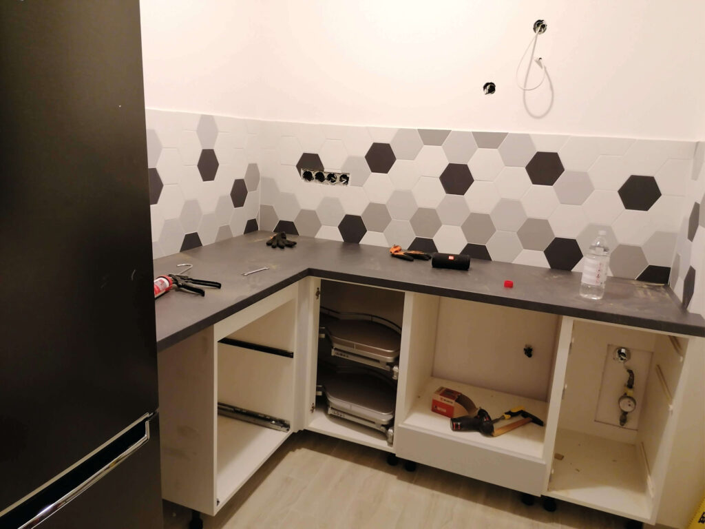 Egy XIV. kerületi lakásban az egyik legnagyobb kihívást a kis alapterület és a nagy belmagasság kombinációja jelentette. A cél egy teljes értékű, mégis kompakt mini konyha és praktikus nappali bútorozás volt úgy, hogy a tér barátságos maradjon és ne legyen zsúfolt.